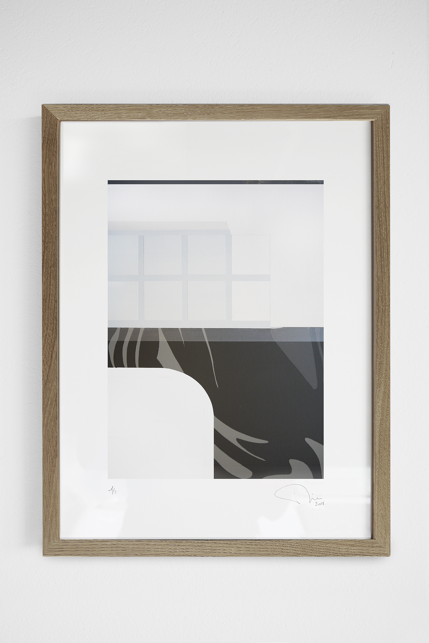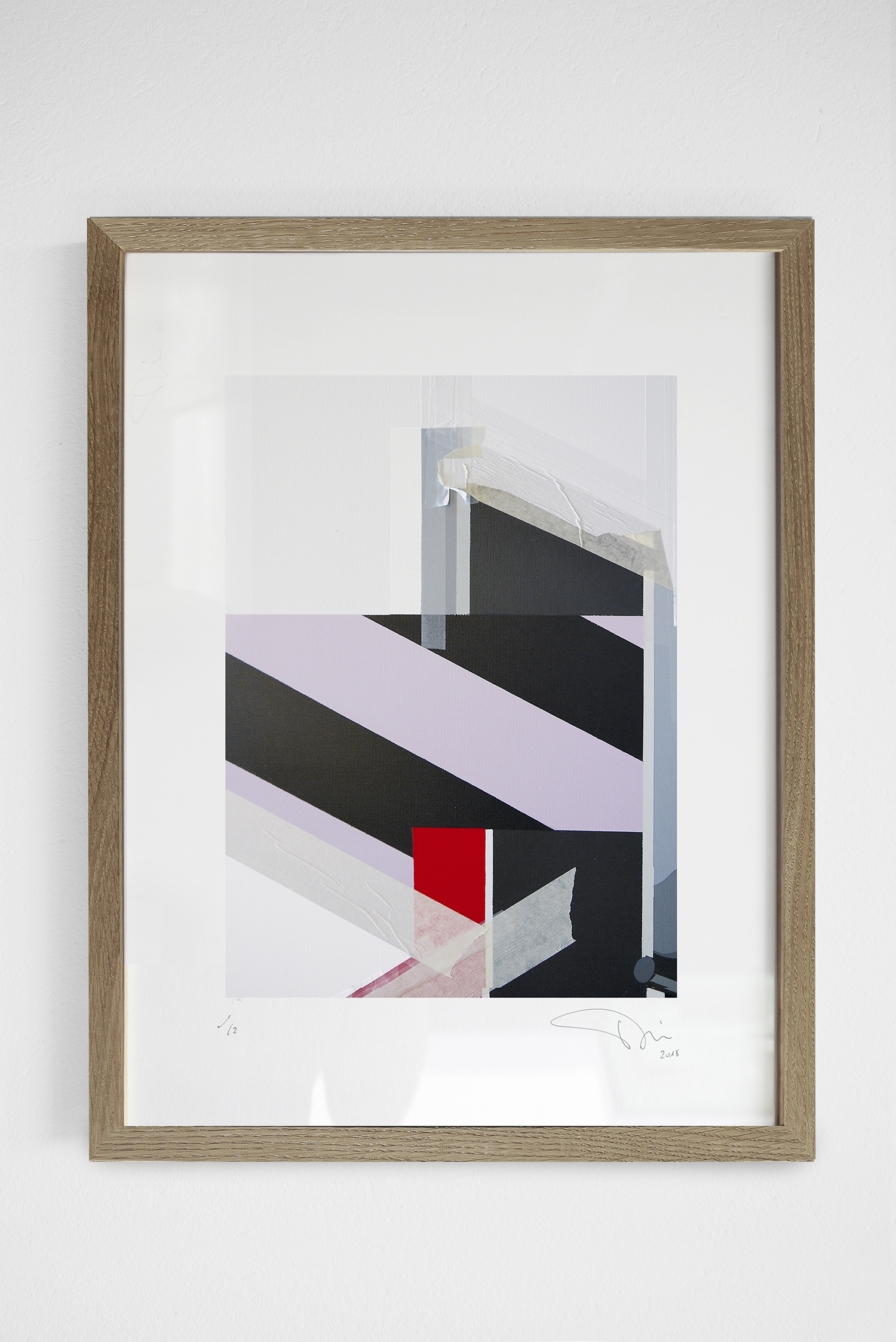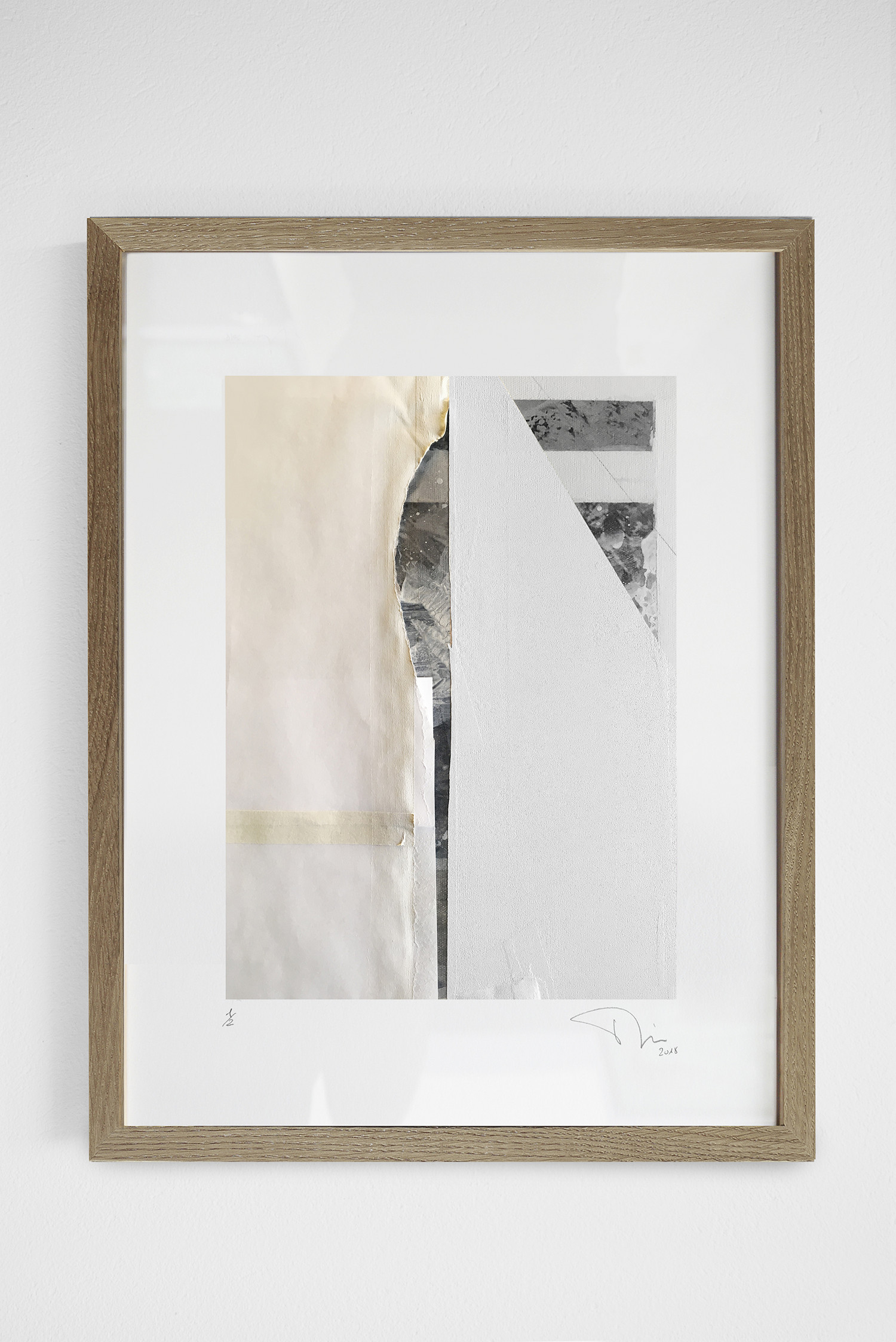 An ongoing photographic series on spontaneous formal compositions which appeared during the process of producing paintings on canvas. But unlike other pieces, these ephemeral situations have never been planned and have been purely caused by chance and "collected" photographically by the artist before their imminent demise. However, this limited series is not to be considered as a documentation or ”making of" but as a distinct project. Each photograph was carefully printed in 2 unique copies with pigmented inks on Hahnemühle FineArt (100% cotton) archival paper. Signed and numbered 1/2 or 2/2 on front side. Mounted under glass and fixed in a natural oak frame, delivred with a certificate of authenticity (COA).