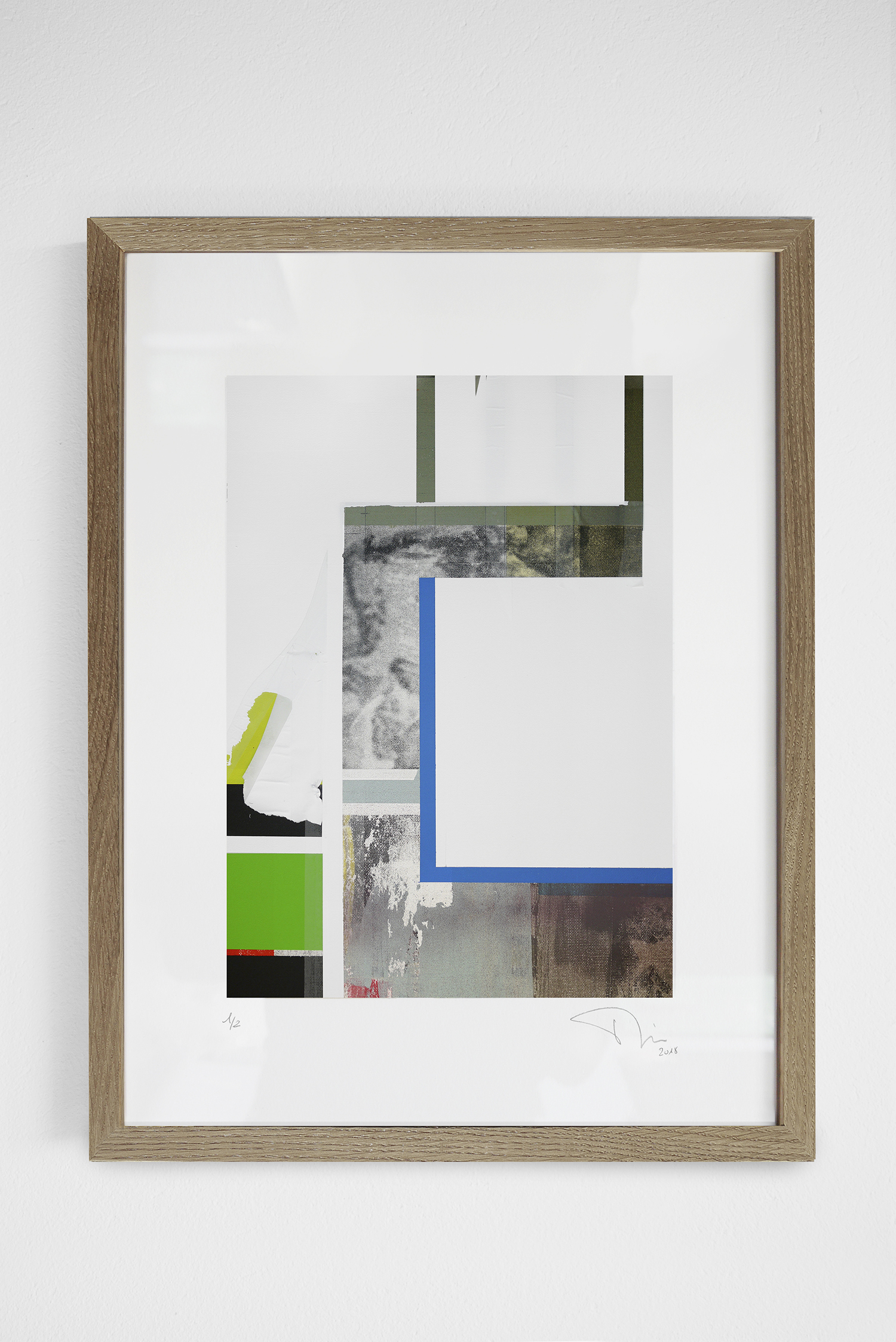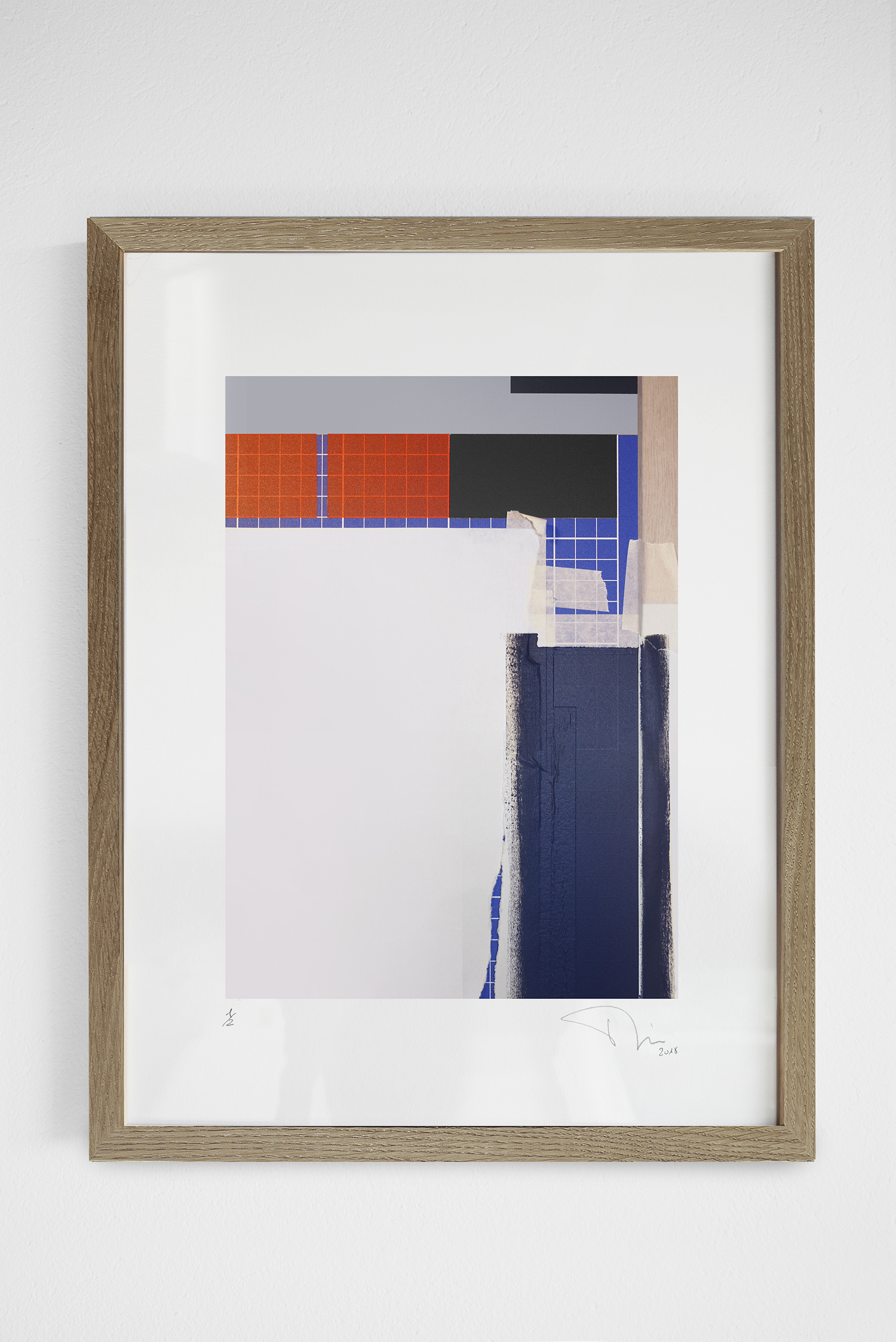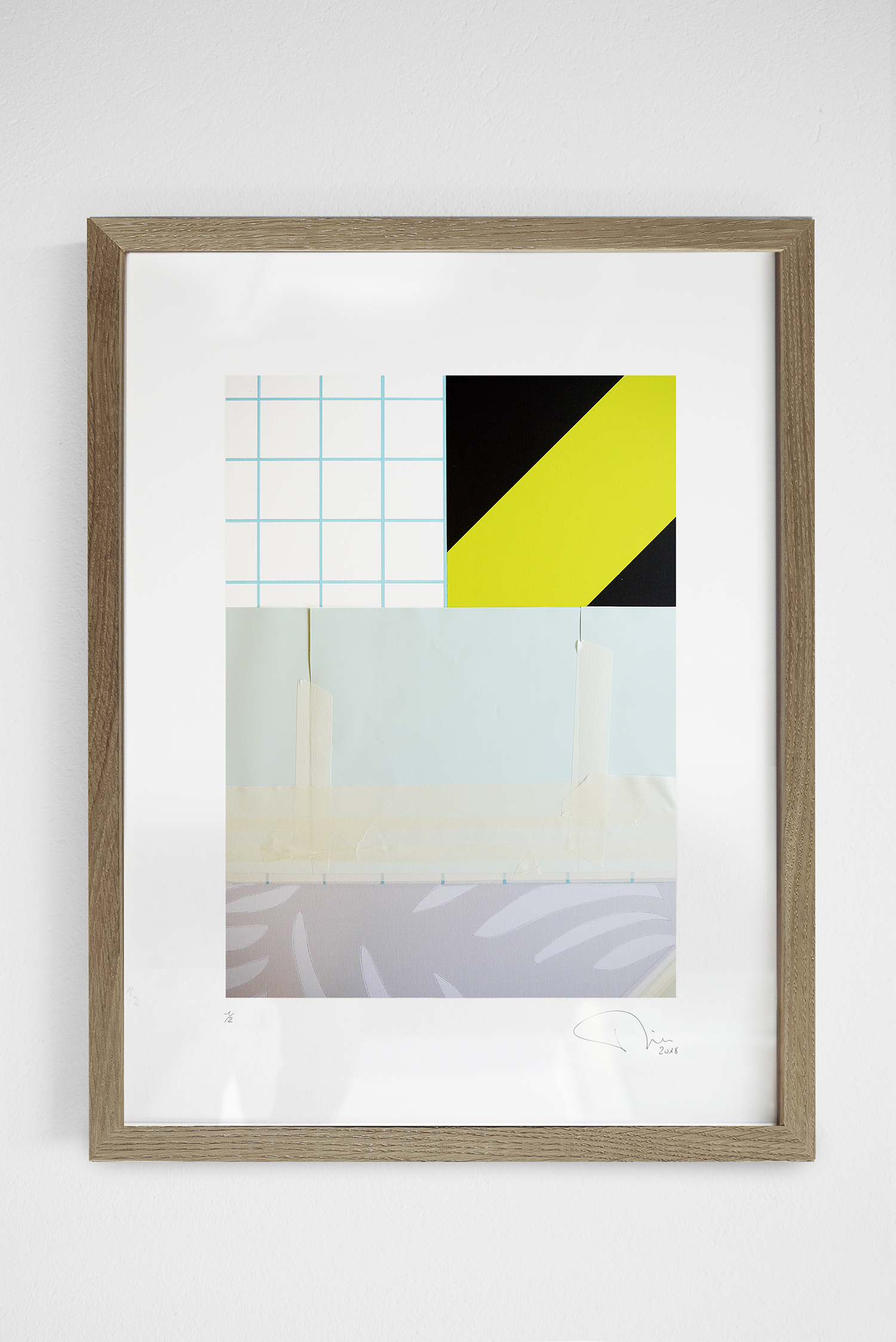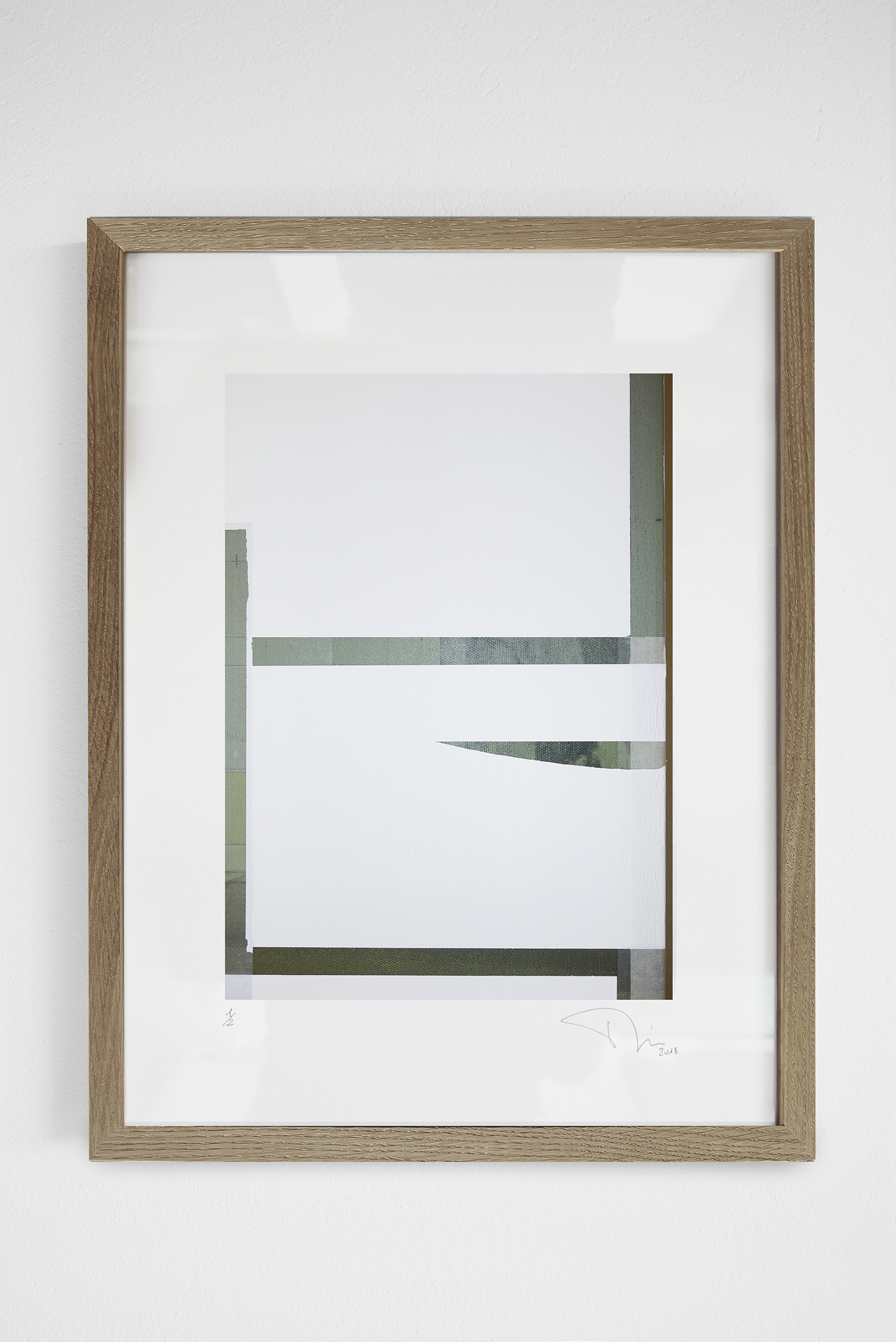 An ongoing photographic series on spontaneous formal compositions which appeared during the process of producing paintings on canvas. But unlike other pieces, these ephemeral situations have never been planned and have been purely caused by chance and "collected" photographically by the artist before their imminent demise. However, this limited series is not to be considered as a documentation or ”making of" but as a distinct project. Each photograph was carefully printed in 2 unique copies with pigmented inks on Hahnemühle FineArt (100% cotton) archival paper. Signed and numbered 1/2 or 2/2 on front side. Mounted under glass and fixed in a natural oak frame, delivred with a certificate of authenticity (COA).