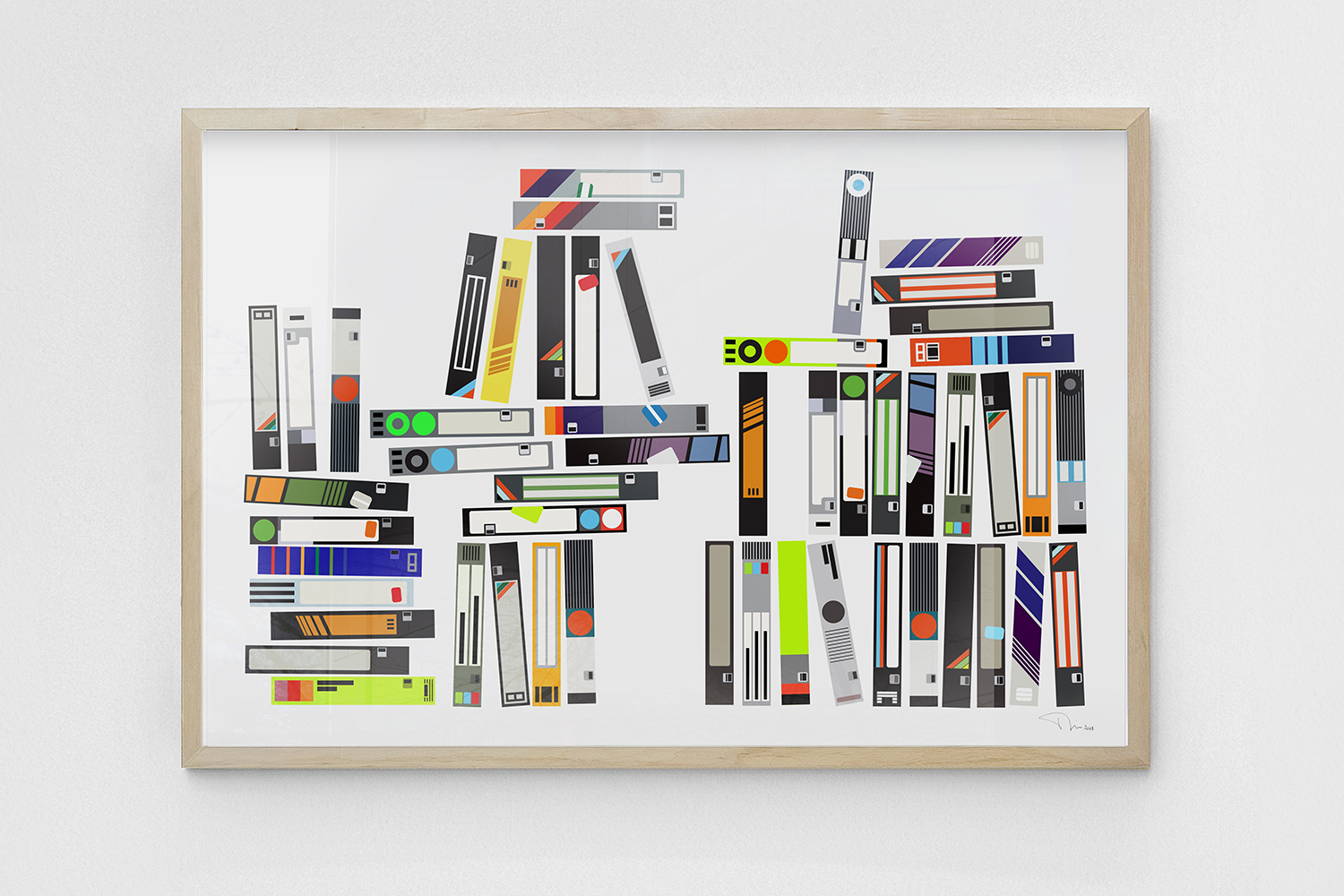 Videocomposite is part of the artist’s work series about obsolete formats and outdated electronic audio/video equipment from the 1980's. Not without nostalgia and irony, these compositions reference packaging of Video VHS cases from that period in 1:1 format. Every print in this series is unique. Signed and numbered 1/1 on front side. Mounted under glass and fixed in a natural lindenwood frame, delivred with a certificate of authenticity (COA).