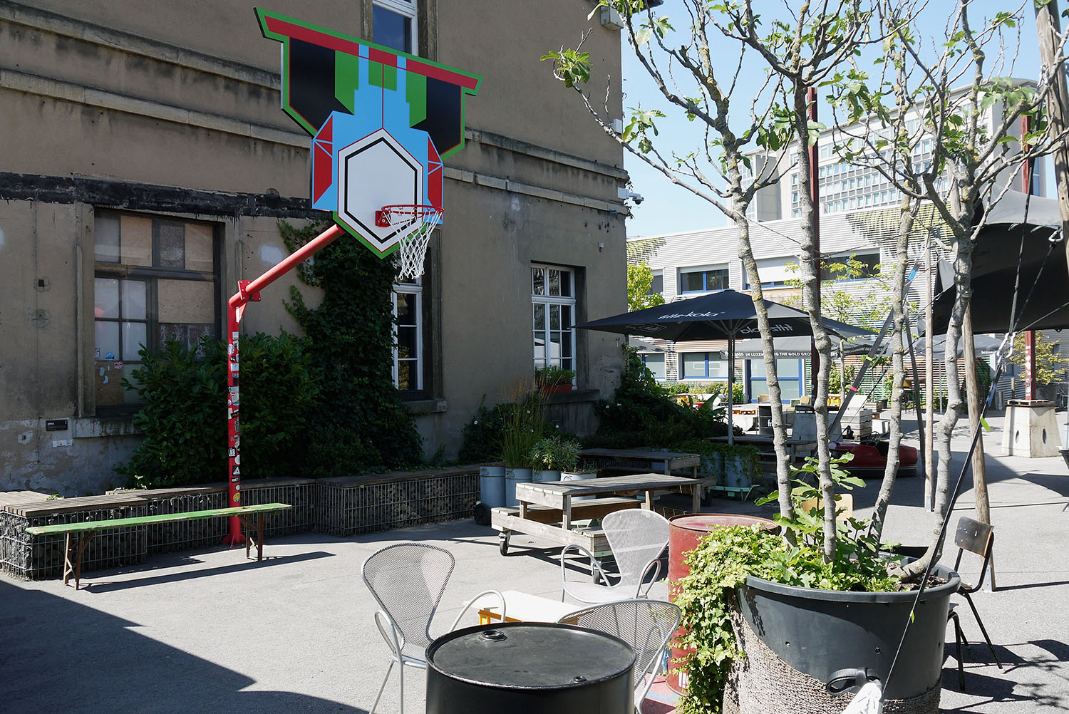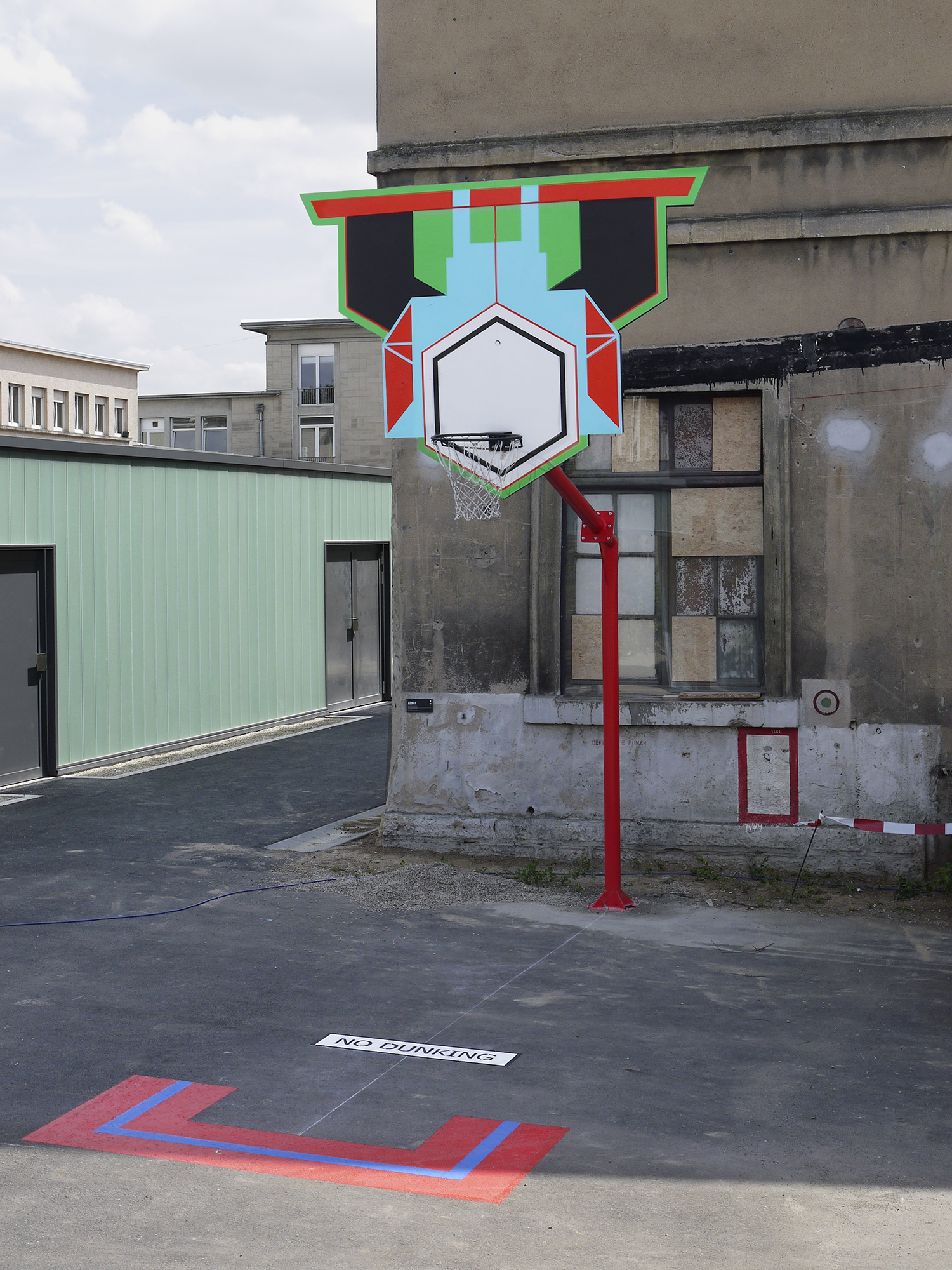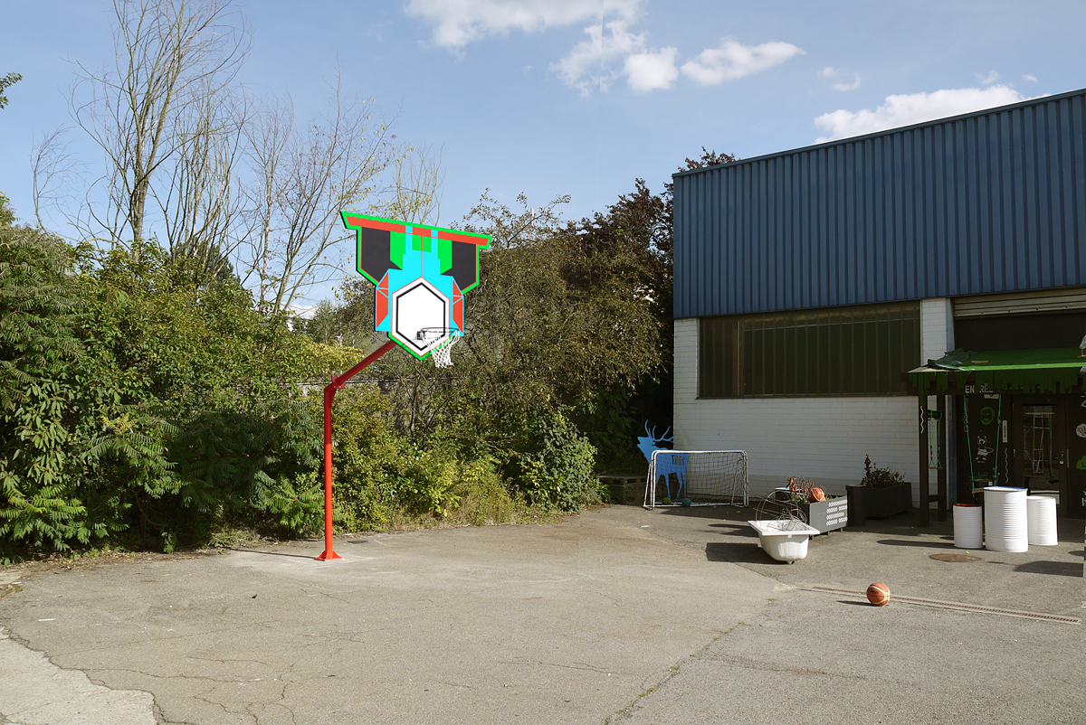 Reinterpretation of a basketball panel. AirMax is an installation which invites you to slam dunk, throw lay ups and to attempt all other 3 point shots. Commissioned and produced by Carré Rotondes - Espace Culturel, Luxembourg.