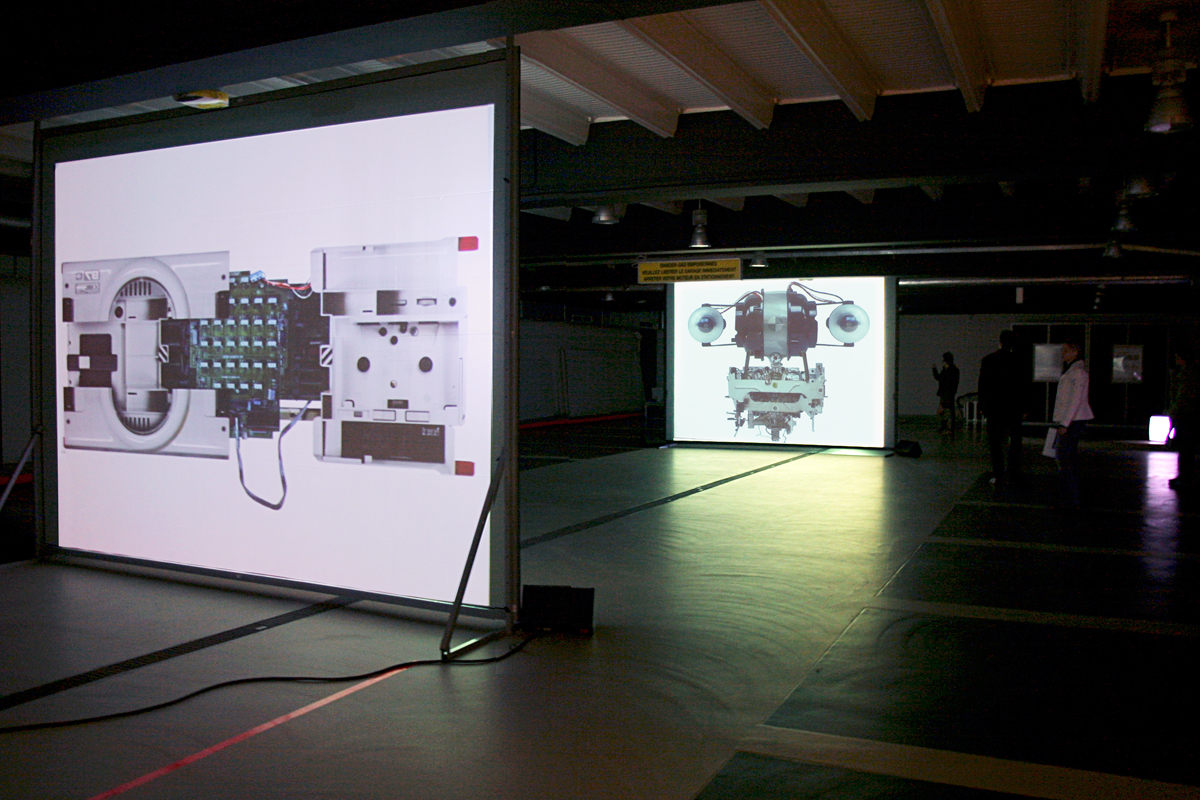 Autoreverse is composed of five audiovisual sequences that show decomposing and recomposing machines made from recycled electric household appliances. Thus, the RS 570, AM A220 and the X1 unfold and reassemble to a soundtrack of “electro-techno-mechanic” rhythmic sounds to reveal their new ultra performing functions. Autoreverse was presented in its preview in October 2005 within the framework of the 5th “Nuit des Musées” in an underground car park in Luxembourg.