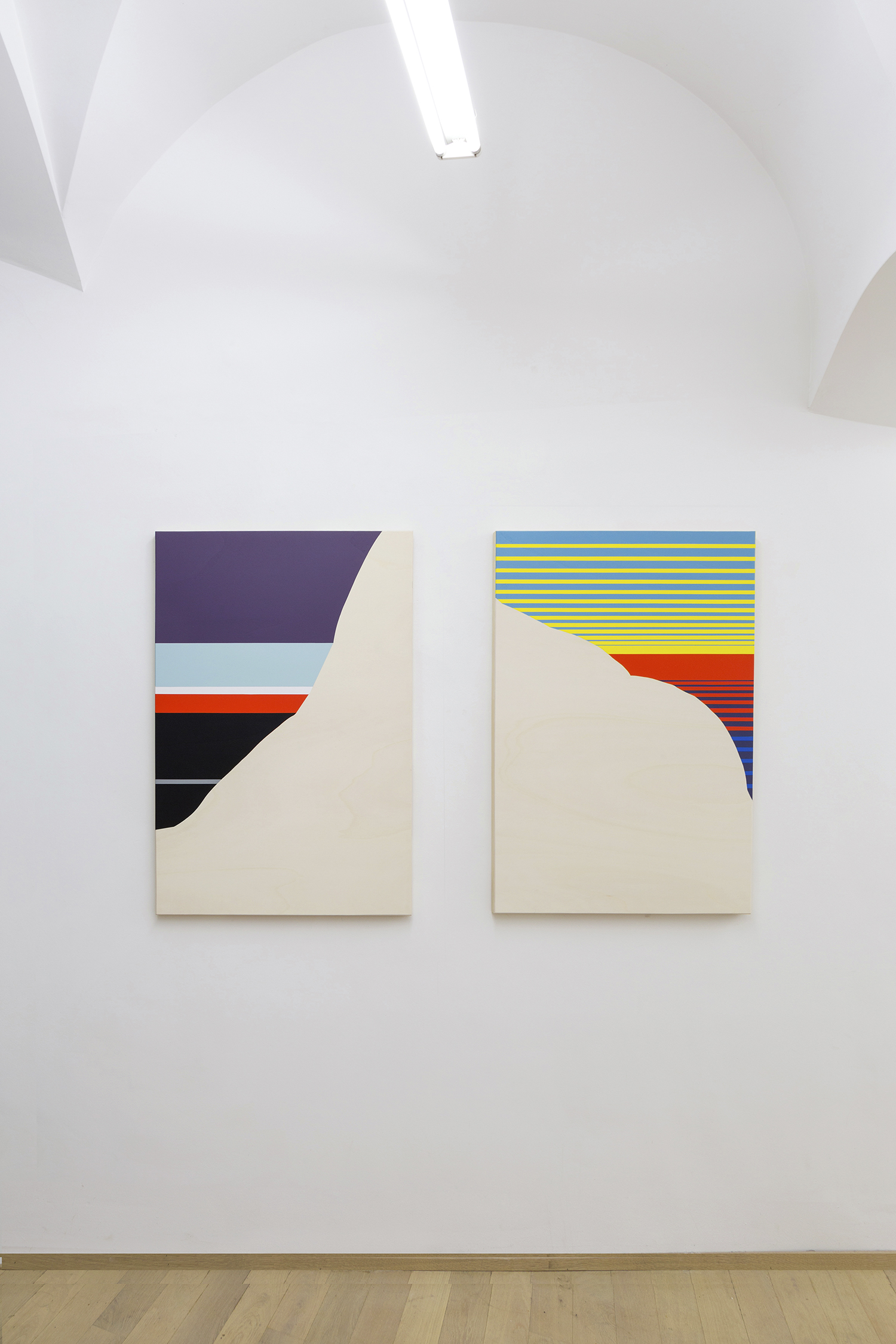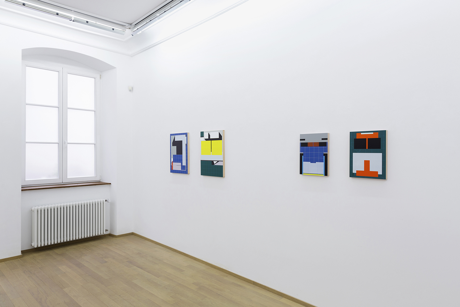 Paul Kirps always works with frames and grids, juxtaposing solid colours and generating mental images. This exhibition is a continuation of his efforts, but ends with a freer note. For the artist, the title Telemark consists of a word game: "Tele", refering to obsolete electronic audio/video material and "mark" which indicates series or model numbers from a production line (Mark I, Mark II, Mark III). At the same time, winter sports enthusiasts will undoubtedly notice that the title of the exhibition also refers to one of the oldest skiing techniques, invented by a carpenter in Telemark County in Norway in 1868.