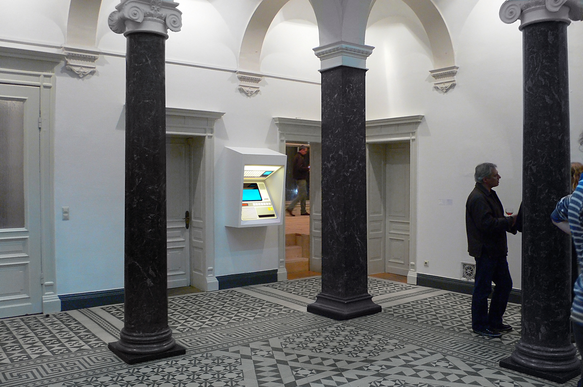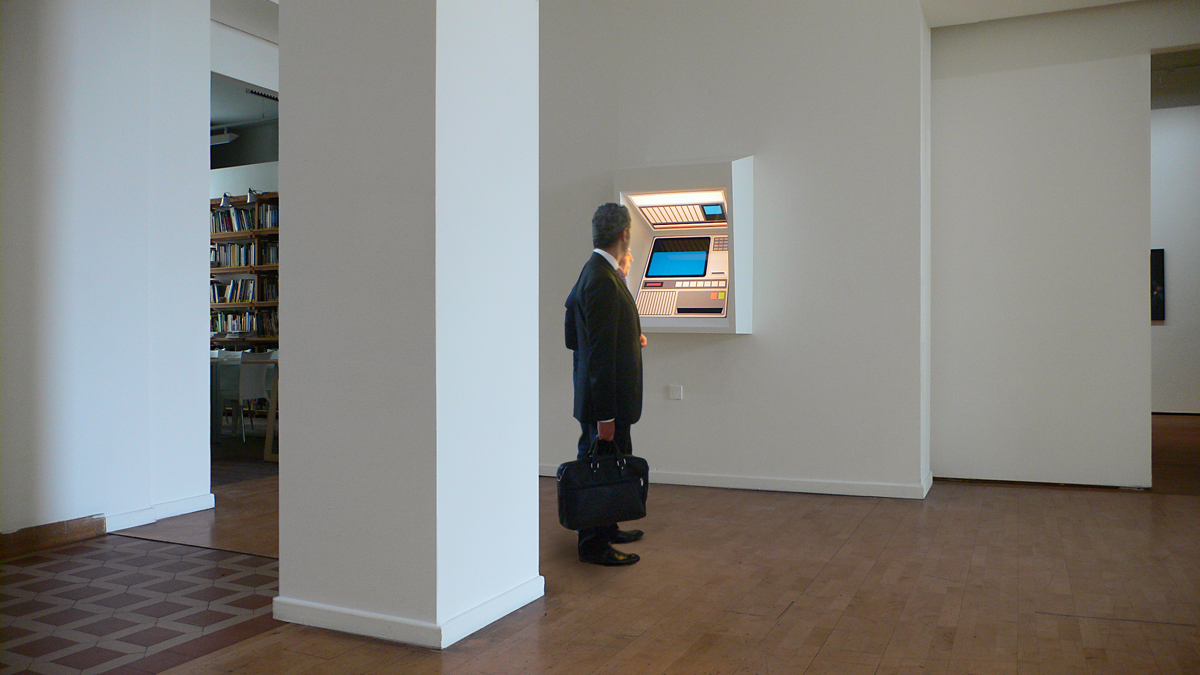 Fake cash distributor (Bancomat, Atm). Conceived and produced for the “Ceci n'est pas un Casino”, group show held at the Casino - Forum d’art contemporain in Luxembourg (1 May - 5 September 2010). Terminal was also on show at the Villa Merkel in Esslingen (14 November 2010 - 13 February 2011), and at the MoMA in New York (24 July - 7 November 2011).